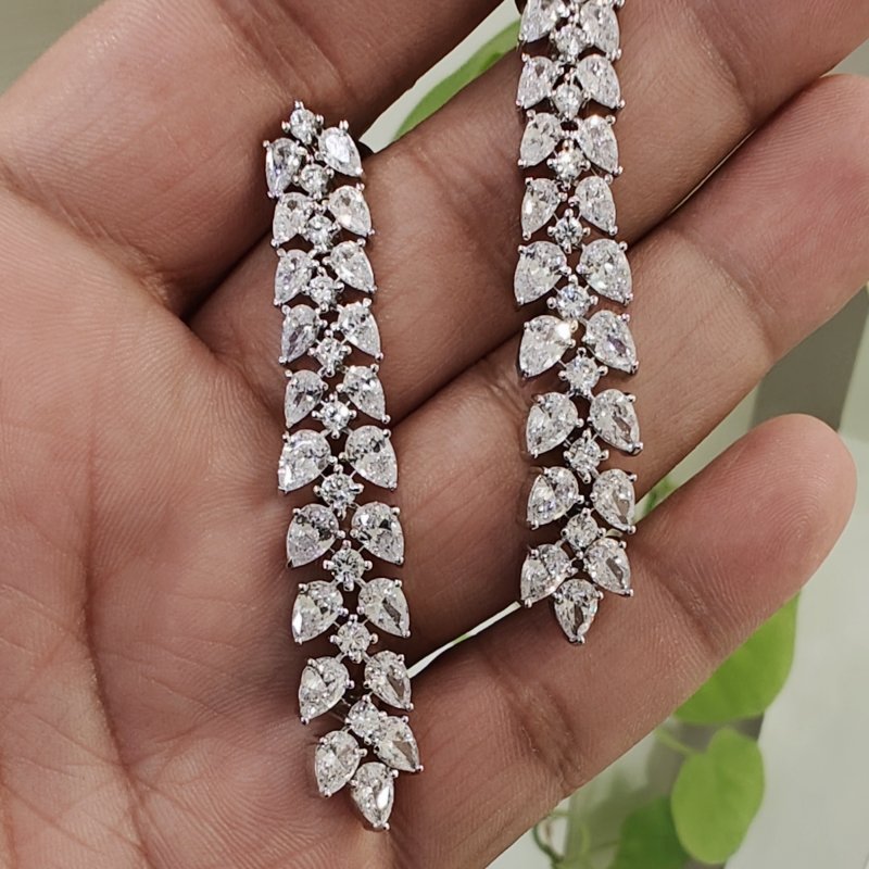 Crafted with elegance, these earrings feature teardrop-shaped zircons that are set with round cz at the center and is super flexible in wearing whihc gives it dazzaling look .