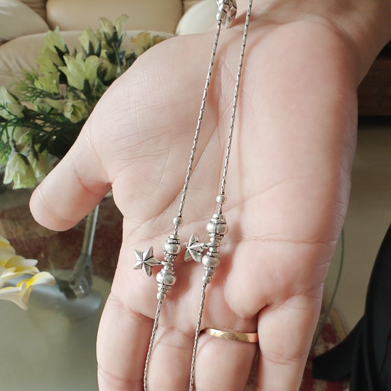 Beautiful statement 92.5 % pure silver payals made starsign with ghungroo bore at hooks .these payals are oxidised to give a rich and eye catching look .