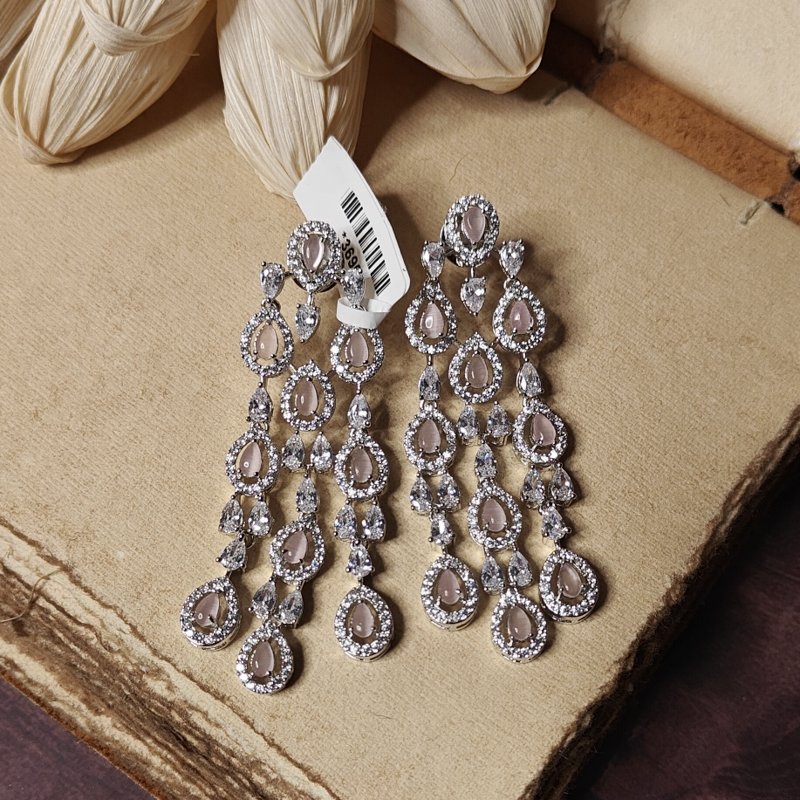 The stunning earrings consist of high-quality CZ and pink stones. They possess a three line design and are coated in white rhodium plating.