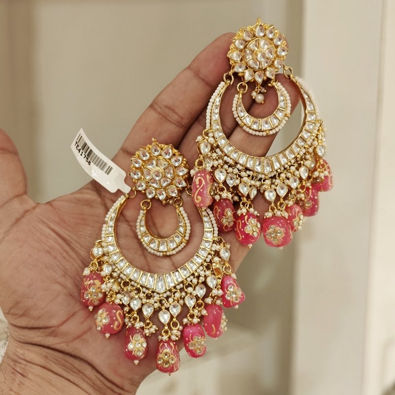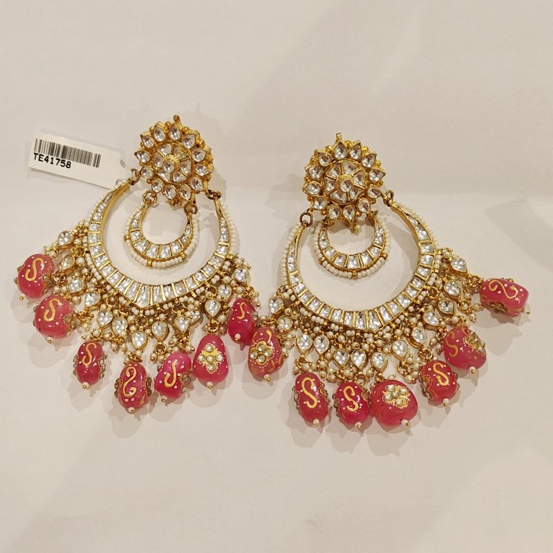 Ananya Chaandbalies are made with paachi kundan stones and beaded with pearls and majenta tumbles.