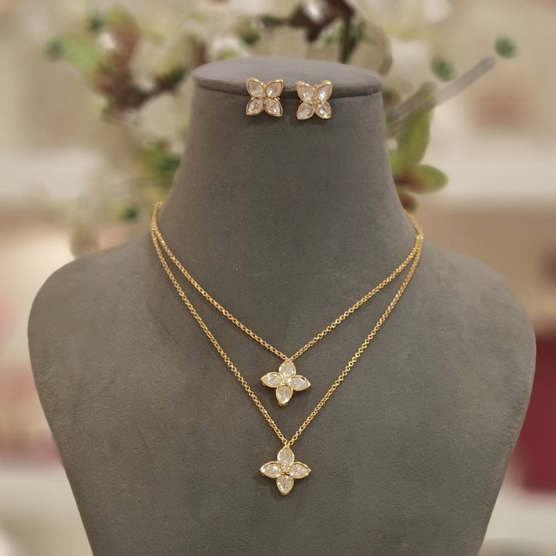 Arnika chain set made in uncut artificial polki along with earrings and plated with 18 kt gold polish .best to be worn with indo Western and western attire .