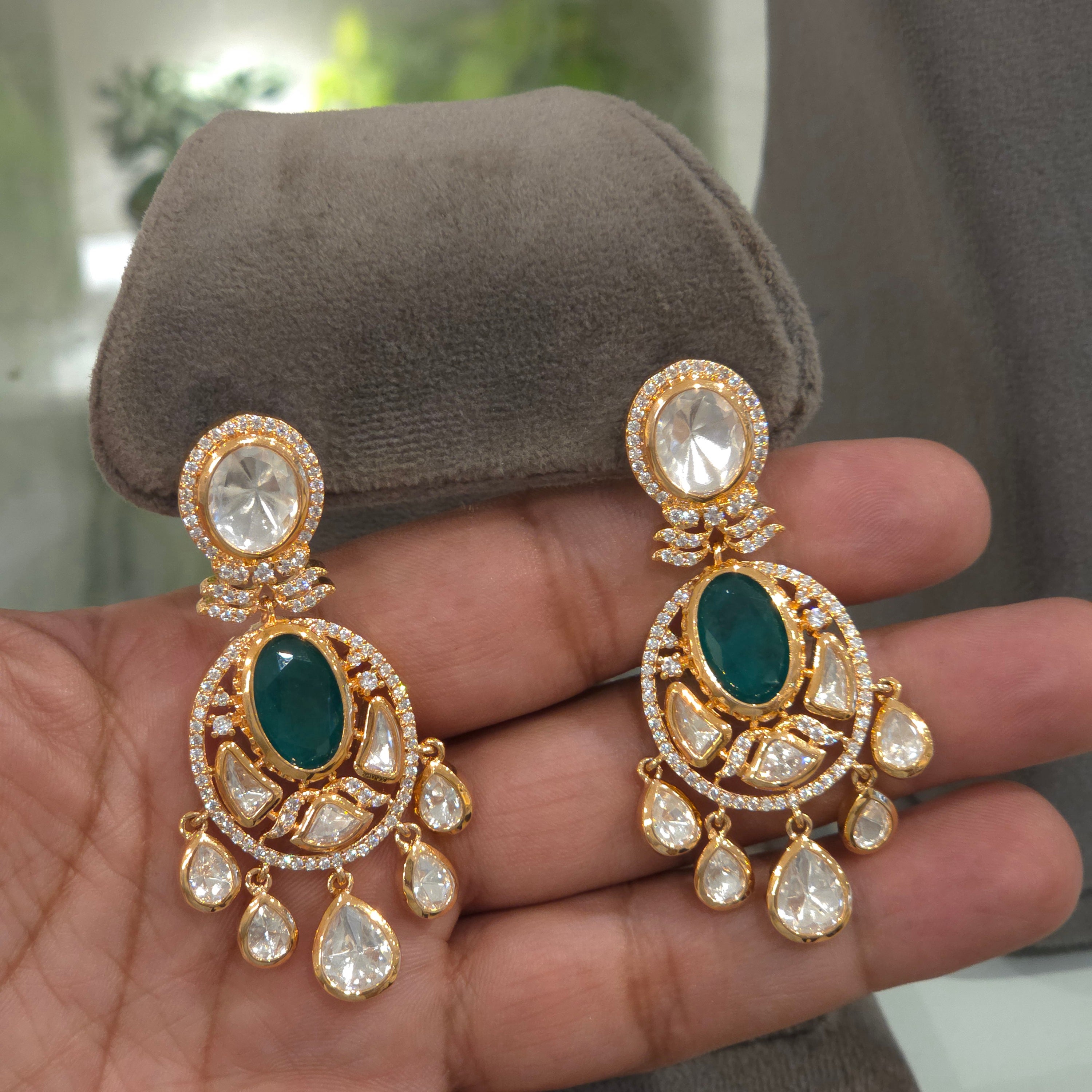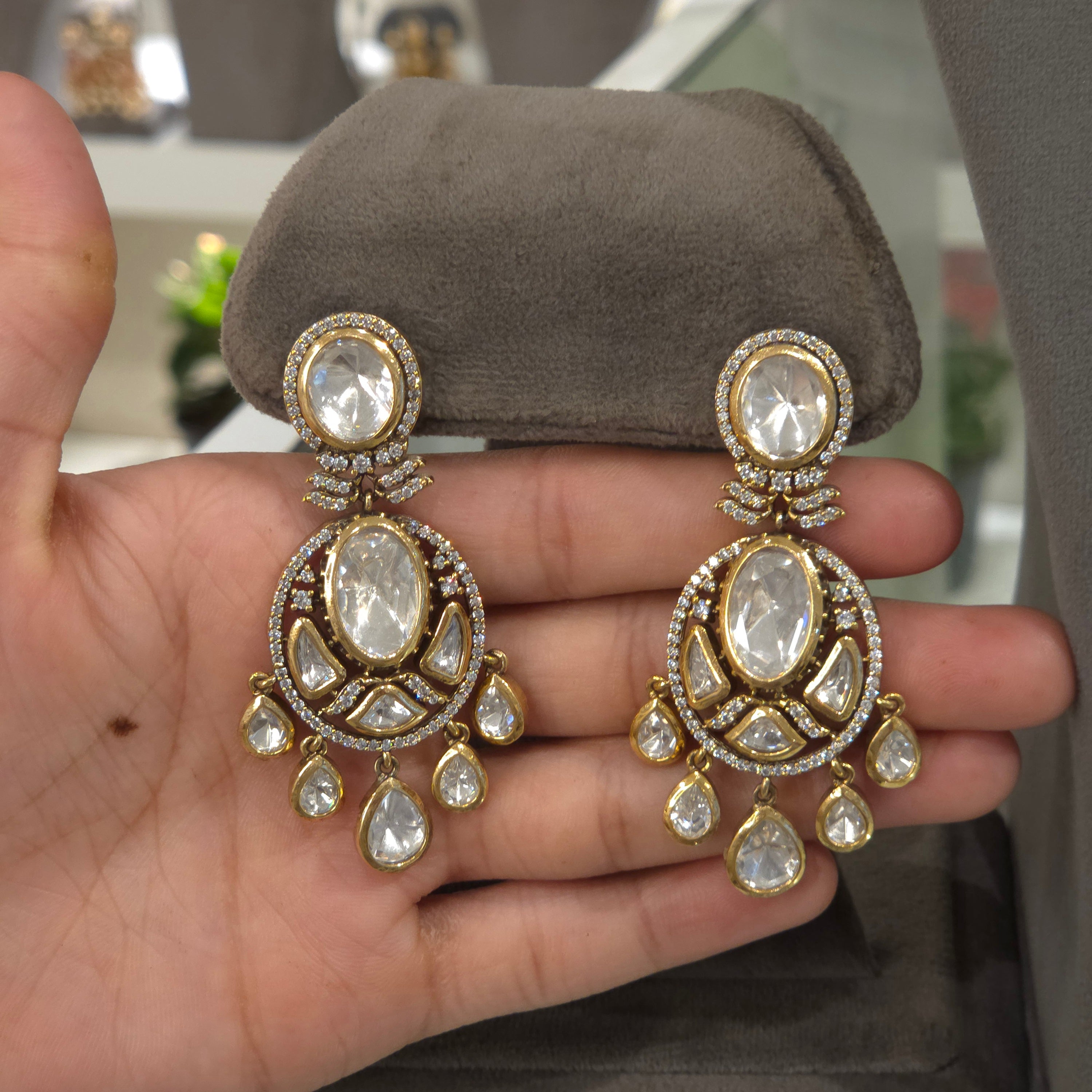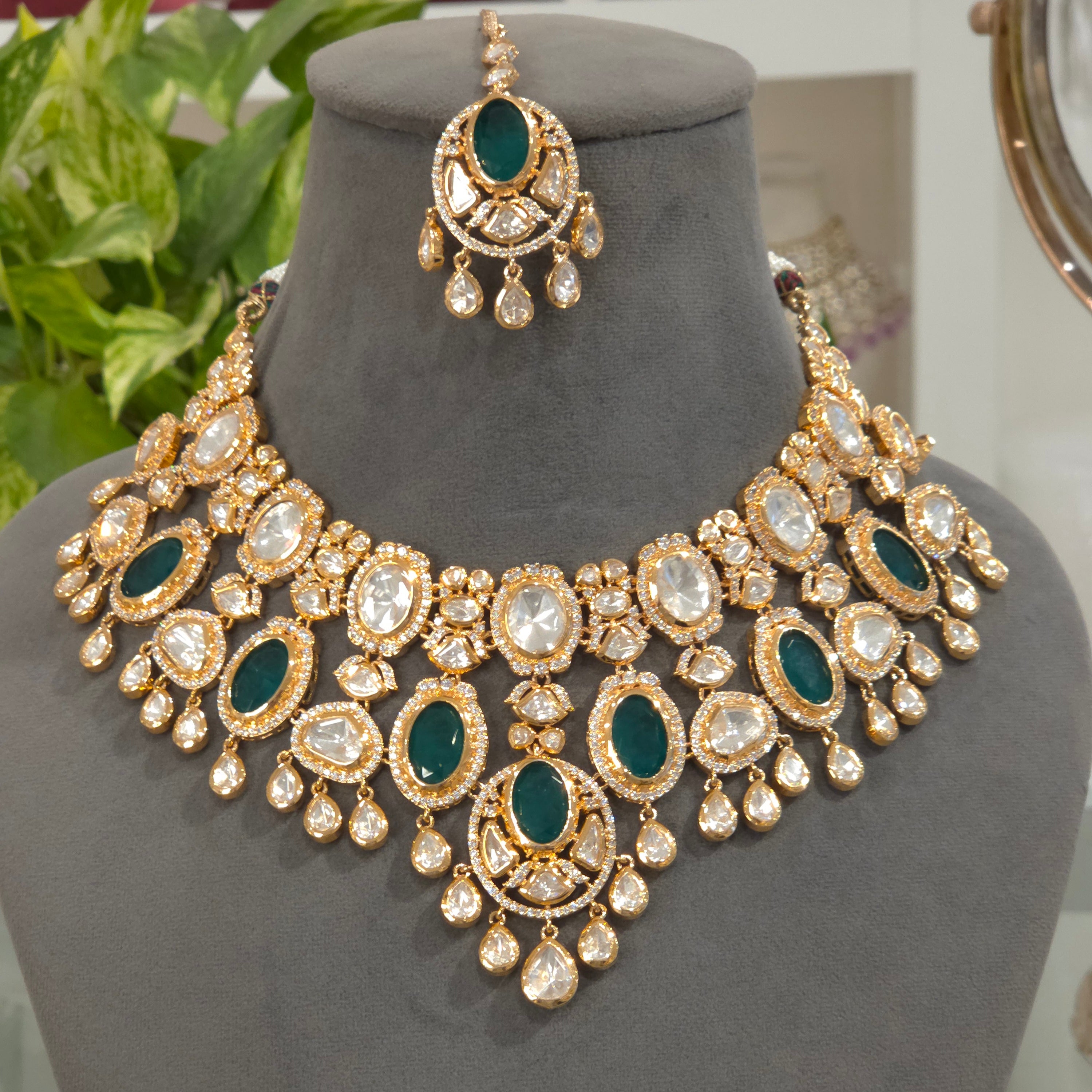 The Brazel Antique Polki Set features gold-plated mixed metal alloy adorned with polished matte white stones. This composition not only enhances durability but also provides a refined aesthetic. The use of polki stones ensures a traditional yet elegant look, suitable for formal occasions.