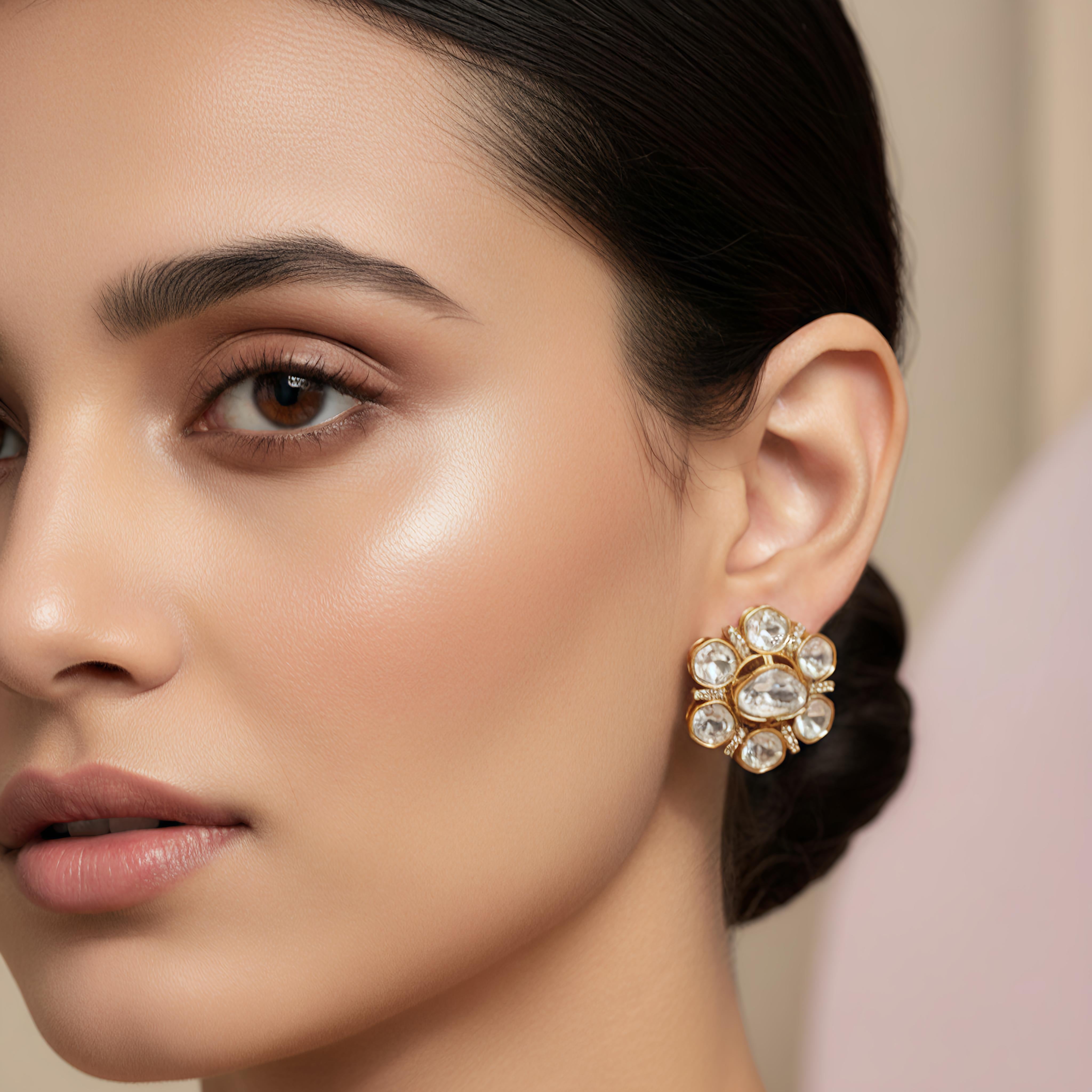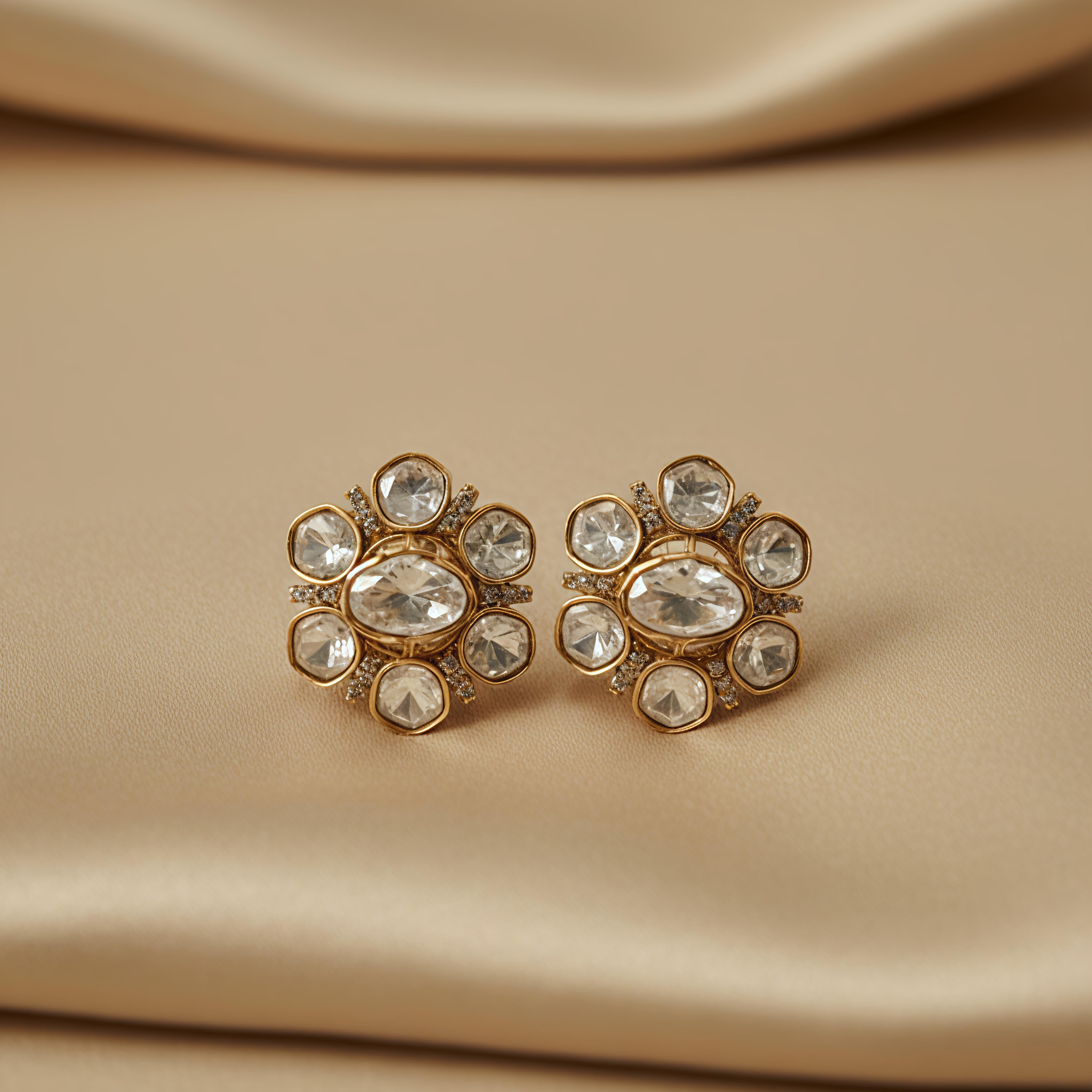 Medium sized gold plated studs ,made with uncut moissanite polki gems .