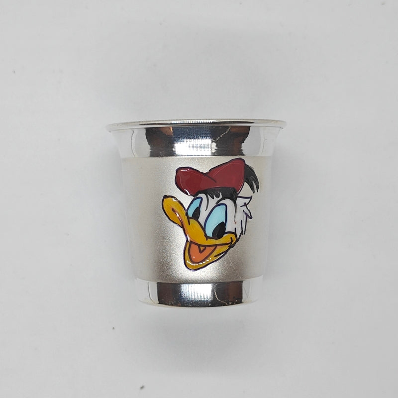 This exquisite piece of artistry showcases an adorable baby glass, skillfully crafted with 92.5 sterling silver, complemented by the enchanting presence of everyone's favorite cartoon character, Donald duck. The charming design is beautifully enhanced with intricate Meenakari work. Delight your little one with this captivating creation, which also makes for a perfect gift option.