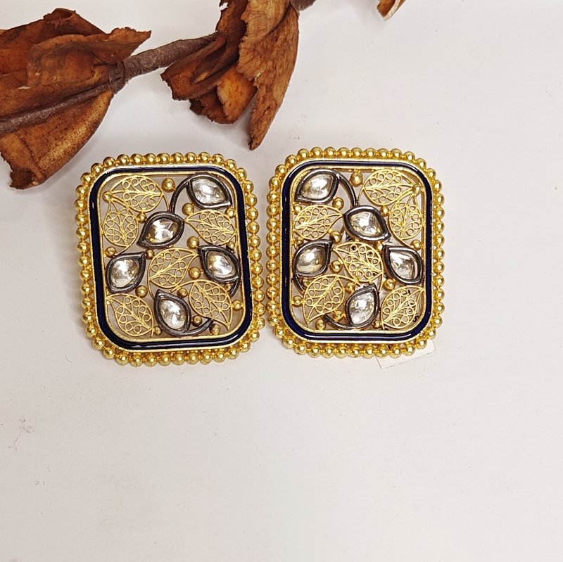 Eesha Gold Plated studs are made in Jali work and Artificial polki .