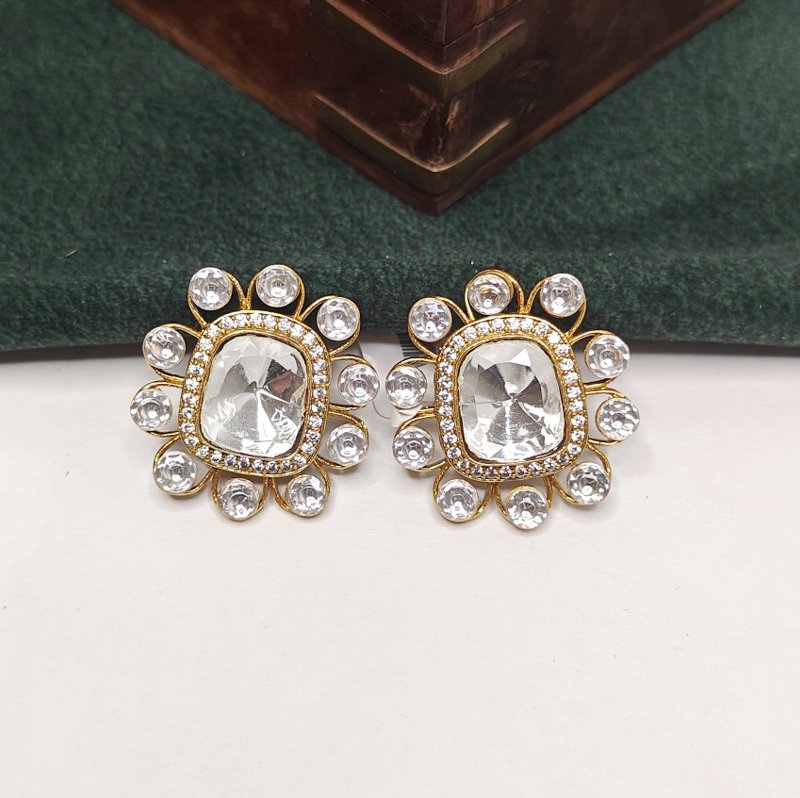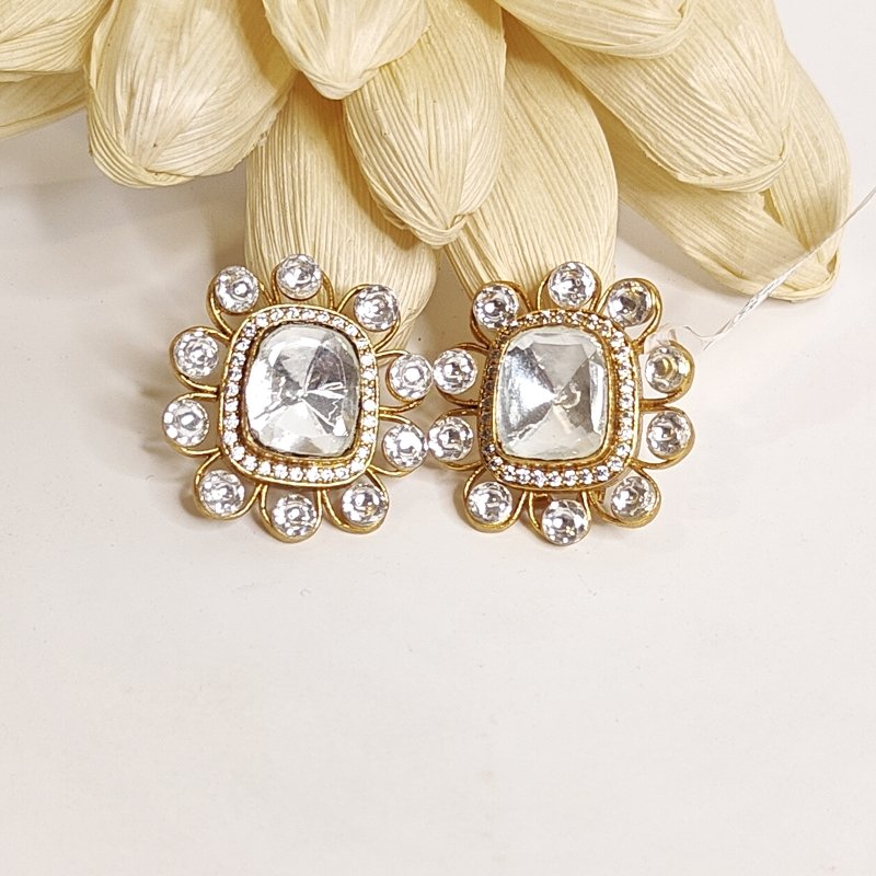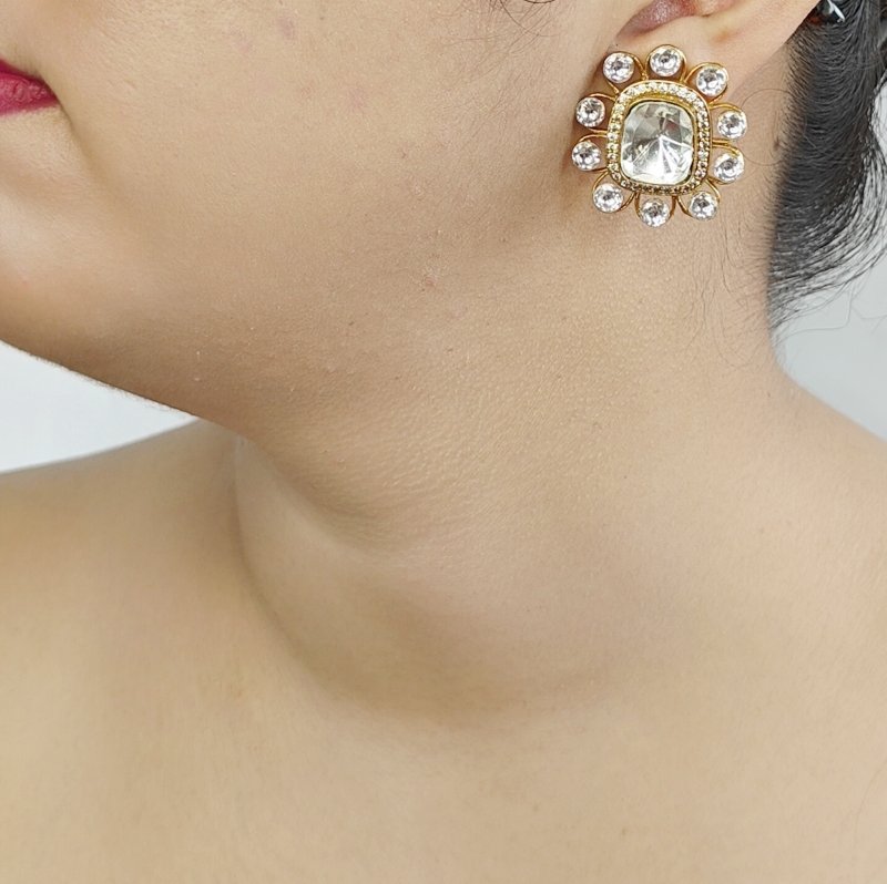 Finest quality deep cut moissanite polki studs plated in 22 kt gold colour to give rich and statement look to this pair of stud.