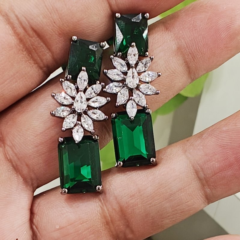 This stunning black rhodium earrings consist of high-quality marquise CZ with emerald green hydro stone.
