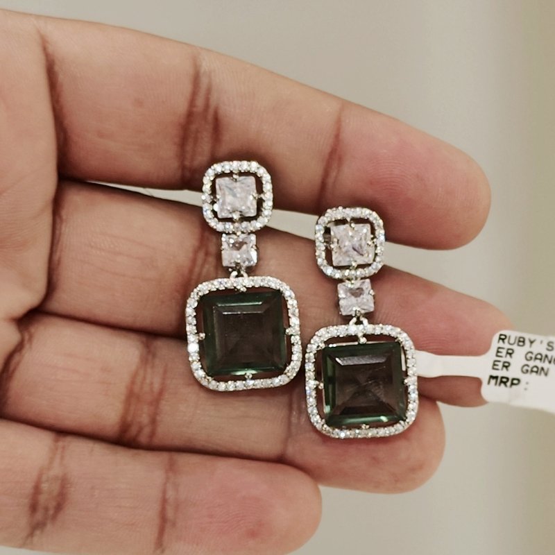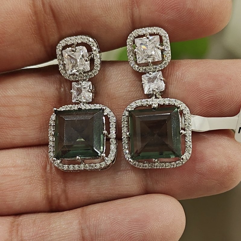 The stunning earrings are crafted using smoky hydro and princess cut cz stones .