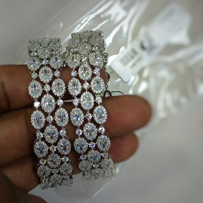 customised on order, consisting of one a d set in white rhodium plating and 1 2.6 bangles matching the set .