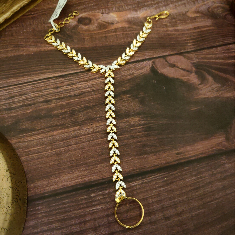 Crafted in A.D with intricate stone detailing and finished with gold rhodium polish, this Indo Western hathphool is designed to adorn a single hand with elegance.