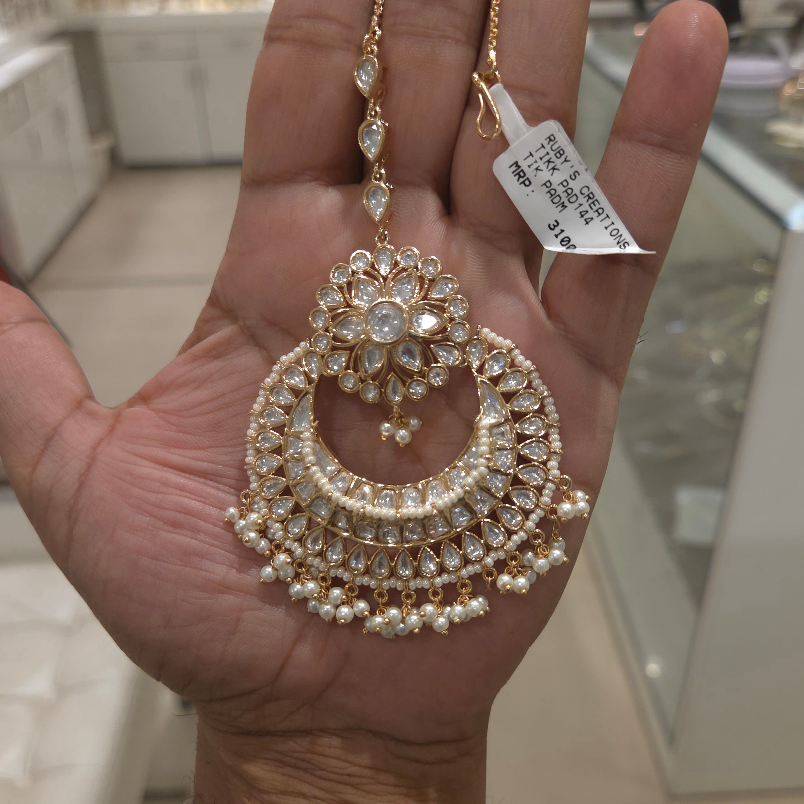 Accessorize like an expert with our Kaya Polki Maangtikka. Made with cz uncut polki and plated with 18 kt gold, this big sized beauty is beaded with small pearls for an elegant touch. Elevate any outfit with this statement piece.