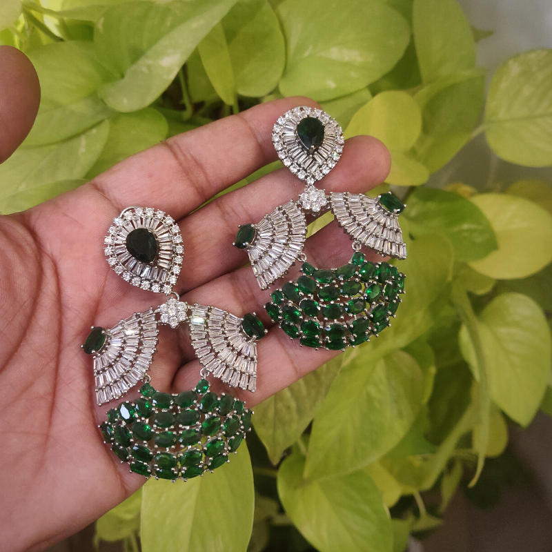 These statement earrings incorporate dazzling emerald green stones and sparkling cubic zirconia.