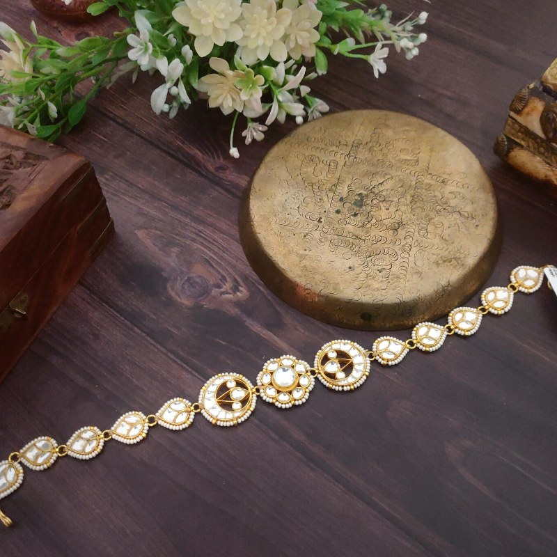 Sheeshpatti made in Ahemdabadi paachi kundan work ,plated in 22 kt gold and beaded with micro pearls .