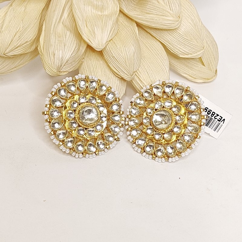 Large-sized studs crafted in paachi kundan artistry with micro pearls on the sides , plated with luxurious 22kt gold.