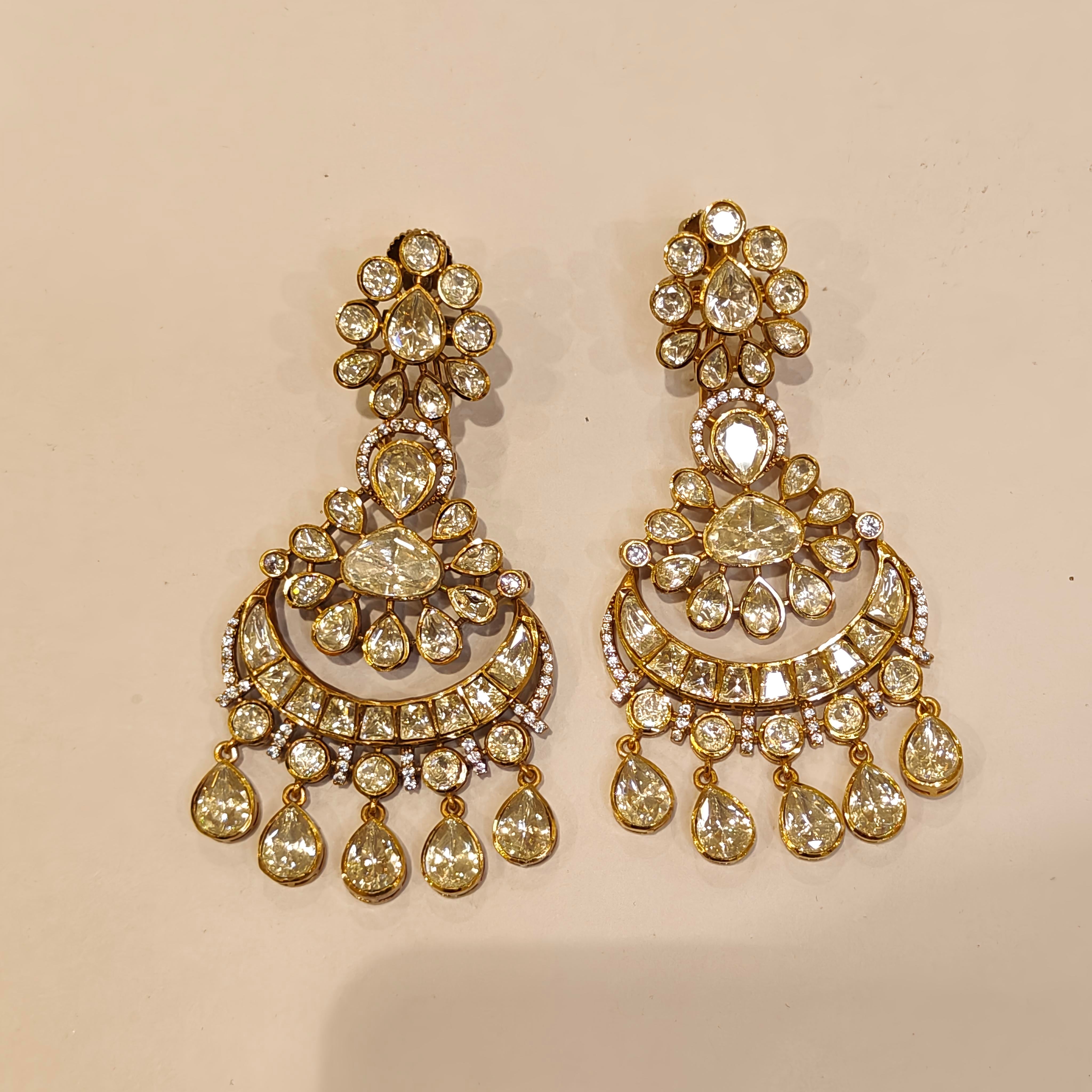 Mesmerising chaandbalis with moissanite polki gems, crafted in 22 kt gold plating — so real, they rival diamond polki.