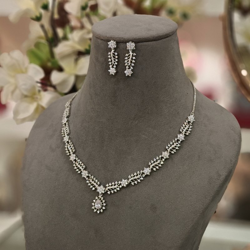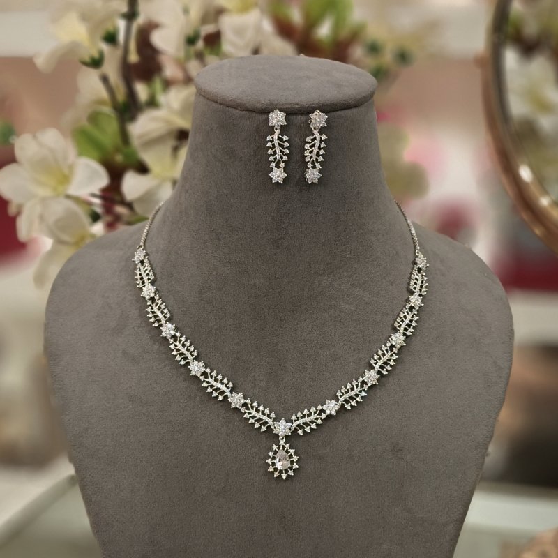 The exquisite neckpiece is created with clear micro CZ stones . It has been elegantly designed with White rhodium plating giving it more luxurious look .