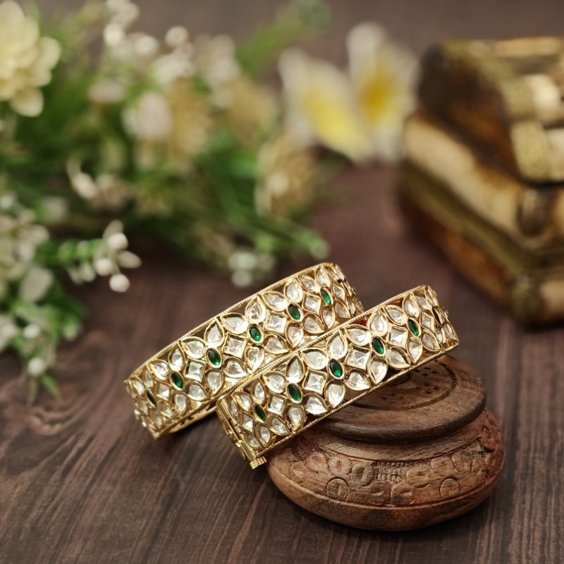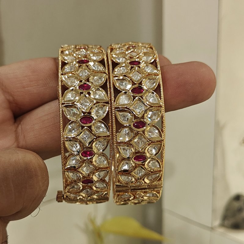 Megha patla bangles are made with silver and red coloured polki stones ,these are openable in size .