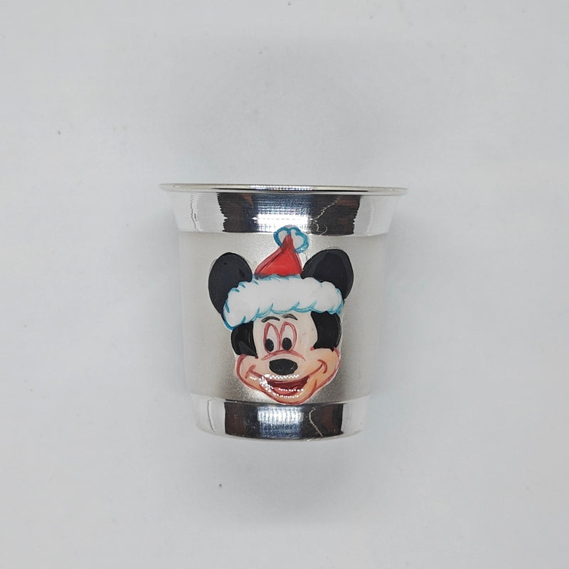 This exquisite piece of artistry showcases an adorable baby glass, skillfully crafted with 92.5 sterling silver, complemented by the enchanting presence of everyone's favorite cartoon character, Mickey Mouse. The charming design is beautifully enhanced with intricate Meenakari work. Delight your little one with this captivating creation, which also makes for a perfect gift option.
