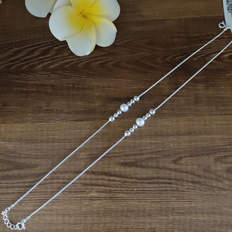 Beautiful statement 92.5 % pure silver payals made in sandblasted center ball and mirror polished chain and balls .