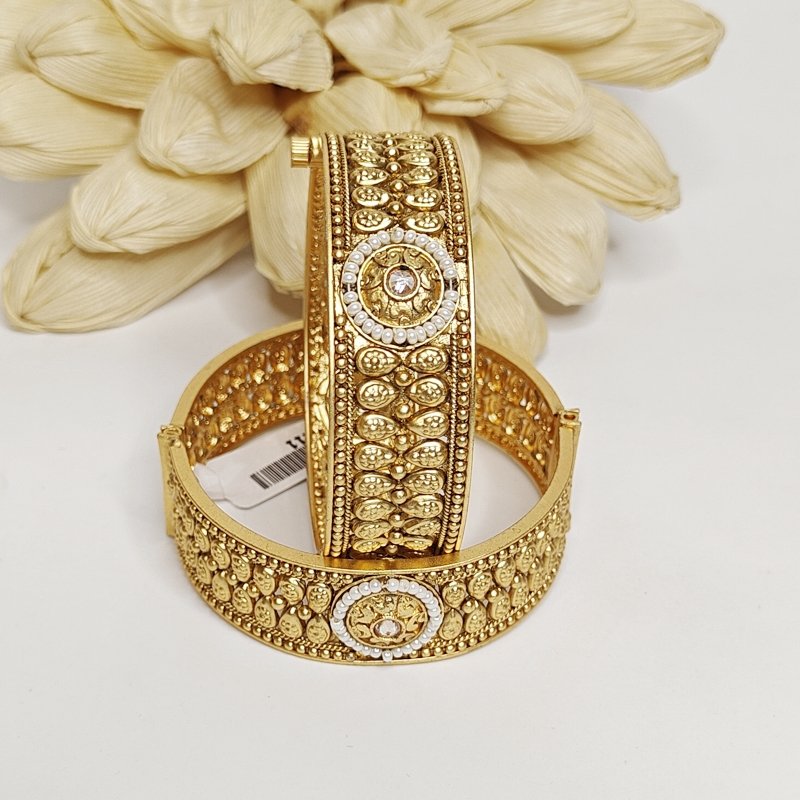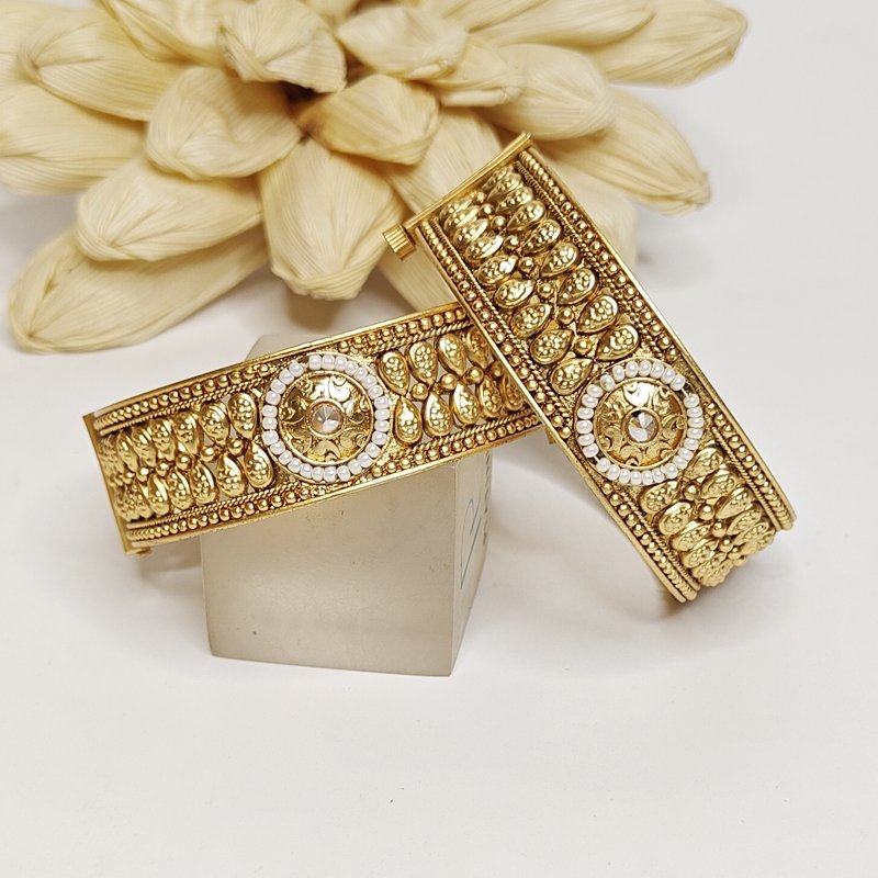 Neha bangles are antique gold plated and made in Die and pearl work. These bangles are openable so it can fit most of the sizes .
