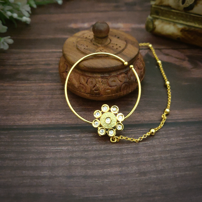 18 kt Gold Plated Nilima Nath ,Enameled in Mint green colour and set in uncut polki stone .