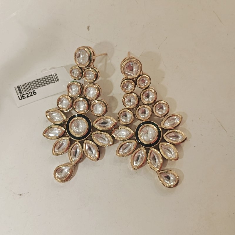 22 kt Gold Plated high quality kundan earrings with green Meena at the center .