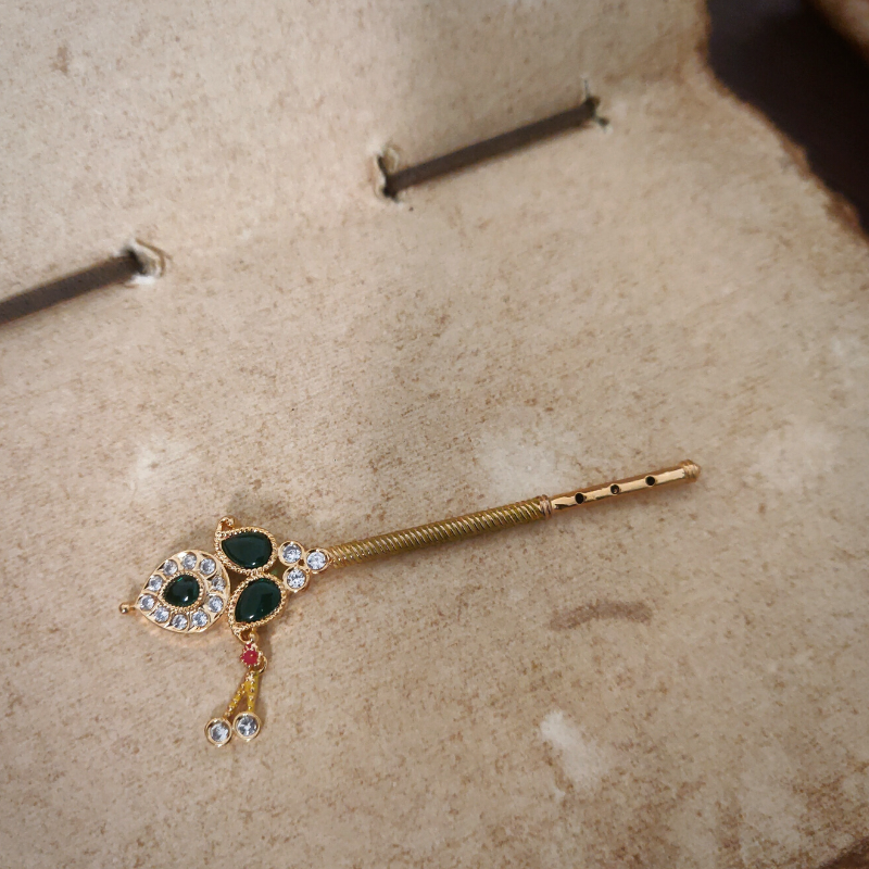 Crafted from artificial polki, this bansuri is made with blue stones .