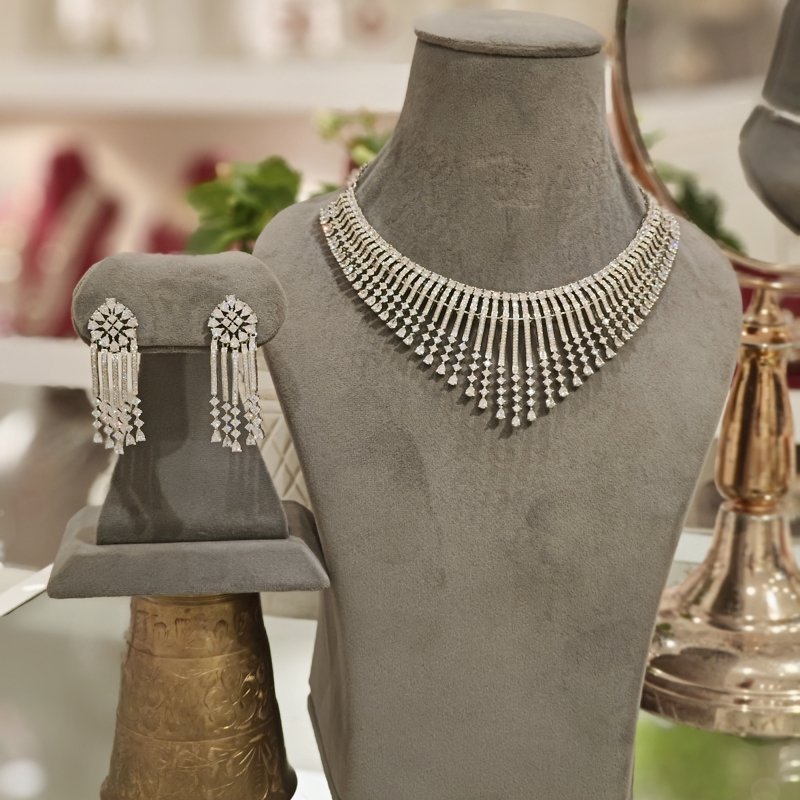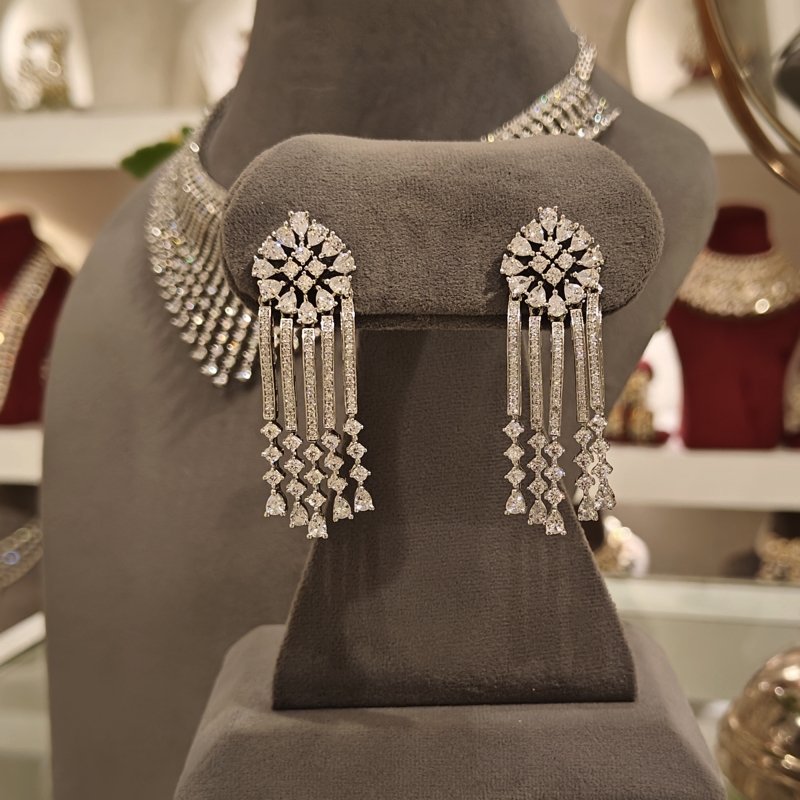 A true masterpiece, this piece is elegantly designed and expertly crafted with star-sized cubic zirconia stones, plated in a luxurious white platinum finish.