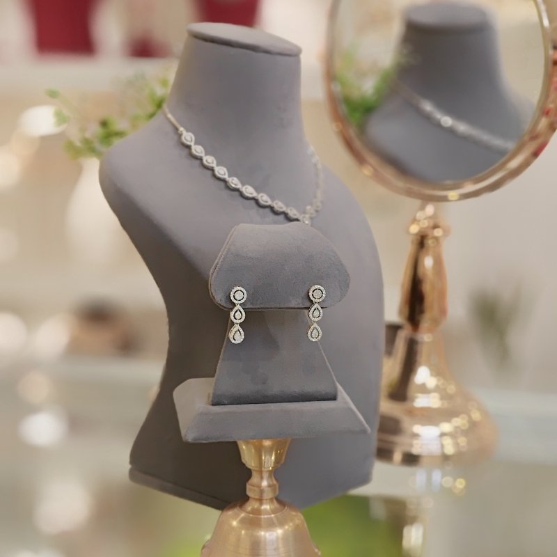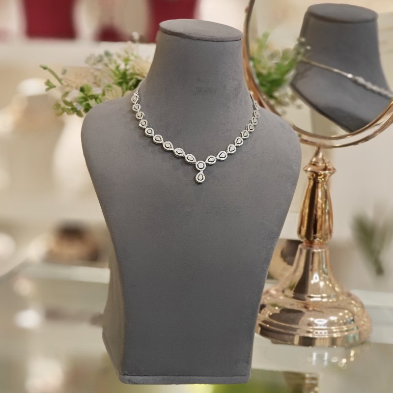Crafted using high-quality CZ stones and plating in sleek white rhodium, this stunning neckline piece features a graceful design that is ideal for special occasions such as engagements or evening parties.