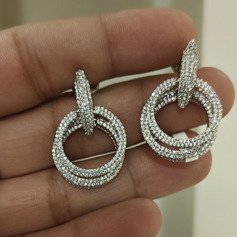 Made in circle design and studded with white cz in wax setting , these are very elegant western look earrings .
