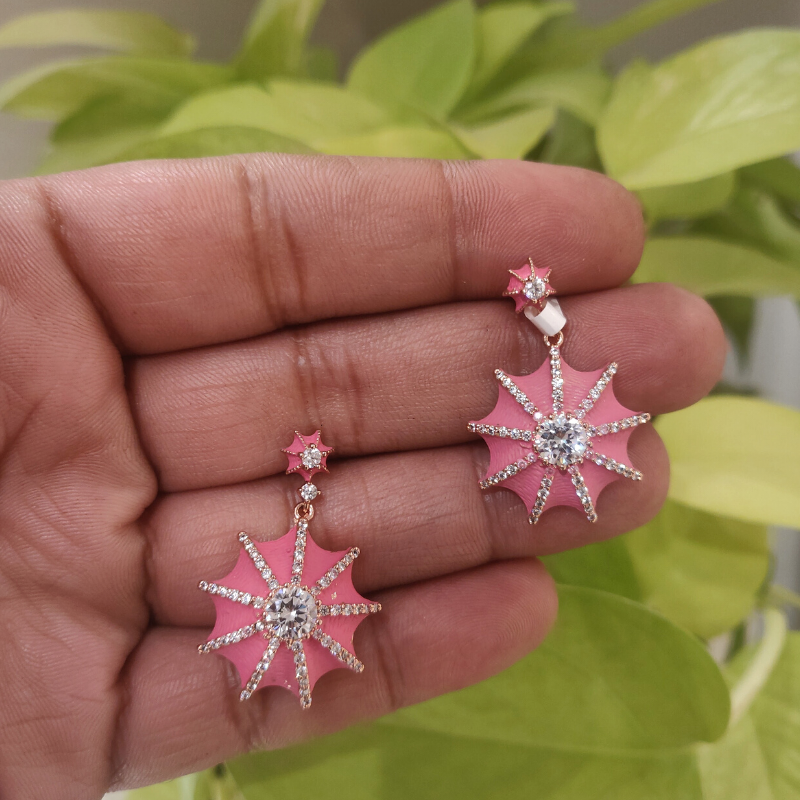 The earrings with Star fish shape are incredibly lightweight and are designed with delicate CZ stones. These exquisite pieces are finished with a pink enamel coating.