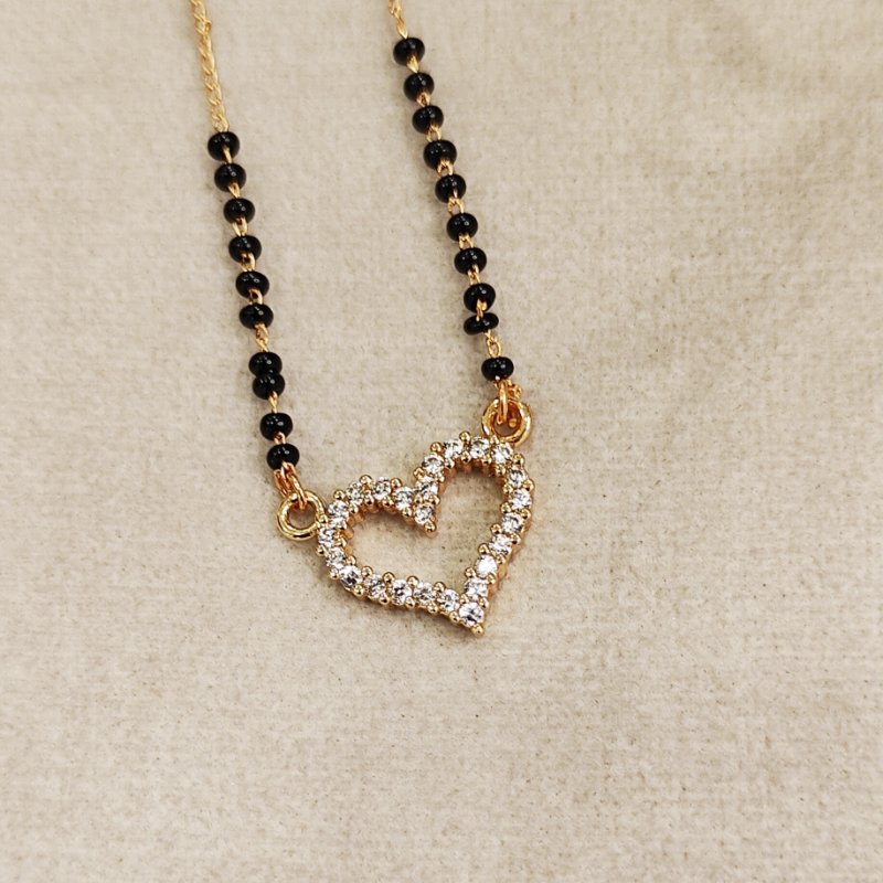Light weight gold plated mangalsutra chain with heart A,d pendent made in American diamond work.