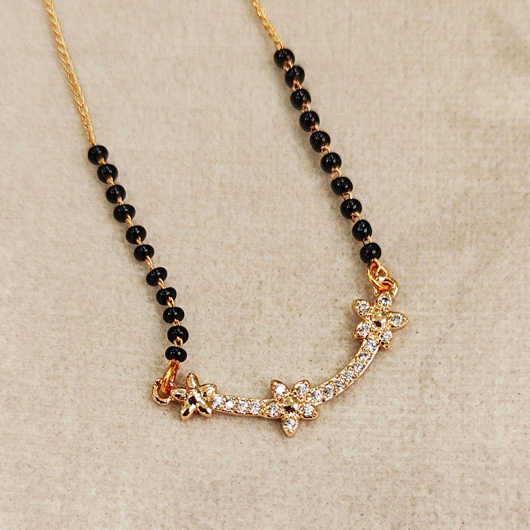 Light weight gold plated mangalsutra chain with flower deigned pendent made in American diamond work.
