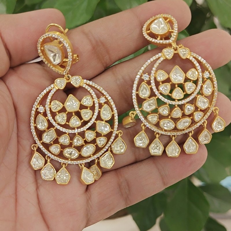 Vrinda Chaandbalies are made with Uncut moissanite polki stones and plated in 22 kt gold .